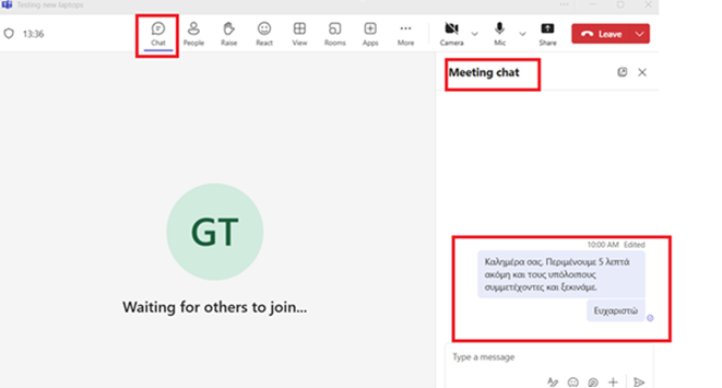 Επιλέγοντας το εικονίδιο Chat εμφανίζεται στο δεξί μέρος το παράθυρο επικοινωνίας,