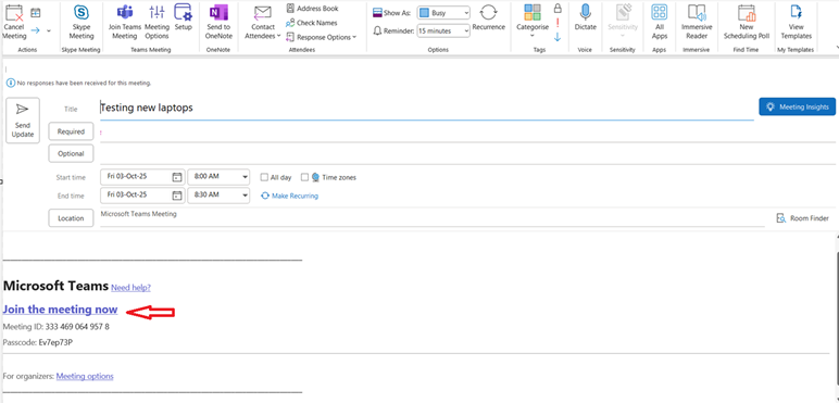 από το ημερολόγιο σας στο Microsoft Outlook και κάντε κλικ στον σύνδεσμο Meeting Οptions.