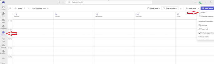 Πατήστε στο Calendar στην εφαρμογή Teams, βρείτε τη συνάντηση, κάντε διπλό κλικ και στη συνέχεια πατήστε Meeting Options.