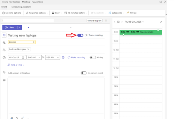 - Title (Τίτλος Συνάντησης): Δώστε έναν περιγραφικό τίτλο.